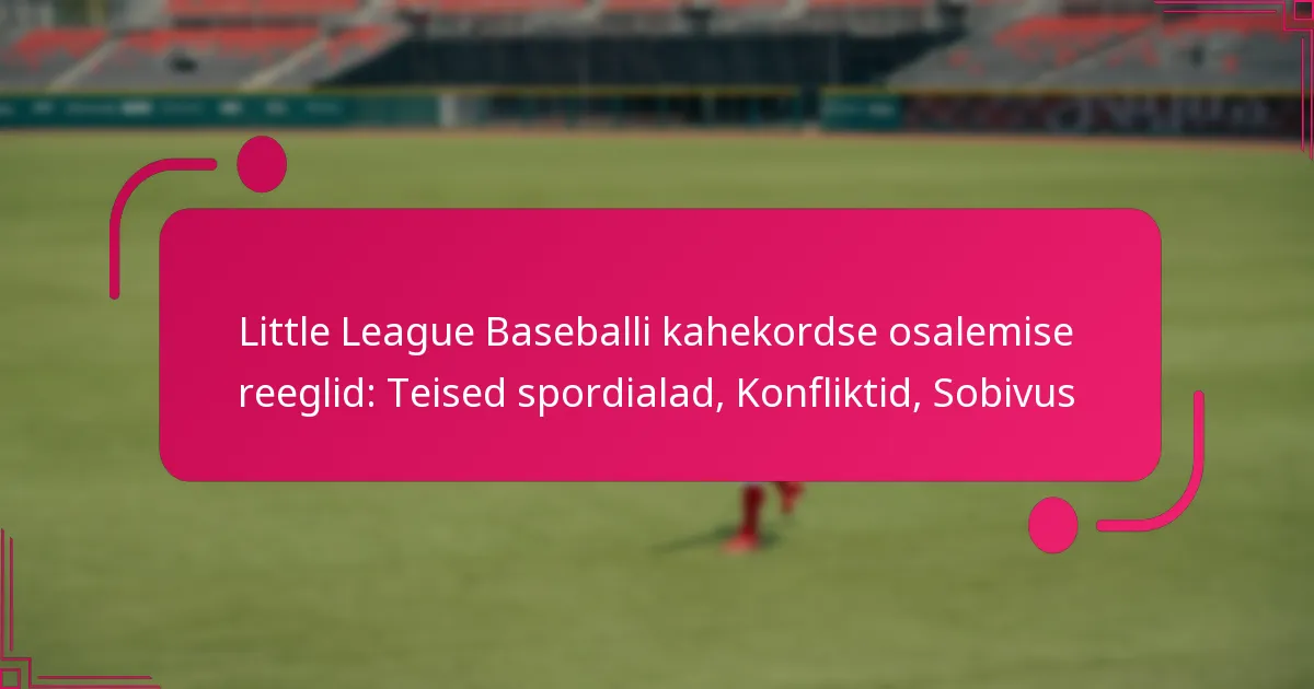 Kaheosaliste osalemise reeglite mõistmine Little League Baseballis on hädavajalik mängijatele, kes soovivad tegeleda mitme spordiga. Sobivuse kriteeriumid, sealhulgas vanus, elukoht ja registreerimine, peavad olema täidetud, et tagada vastavus. Lisaks on tõhus suhtlemine treenerite, mängijate ja vanemate vahel ülioluline ajakava konfliktide haldamiseks, võimaldades sportlastel nautida mõlemat sporti, säilitades samal ajal oma pühendumise meeskonna dünaamikale ja sooritusele.