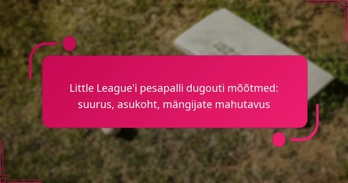 Little League’i pesapalli varjualuste projekteerimine nõuab tähelepanu mõõtmetele, mängijate mahutavusele ja mugavusele. Parimad praktikad tagavad, et mängijatel on piisavalt ruumi, ohutus ja mugavused, et parandada nende mängukogemust.