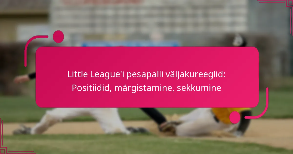 Little League’i pesapallis on väljakureeglite mõistmine mängu tõhususe tagamiseks hädavajalik. Peamised positsioonid, nagu pildija, püüdja, siseväljakumängijad ja väliväljakumängijad, omavad igaühel spetsiifilisi kohustusi, mis aitavad kaasa meeskonna kaitsele. Lisaks võivad sildistamistehnikate valdamine ja sekkumise äratundmine mängu tulemust oluliselt mõjutada, tagades ausa mängu ja strateegilise eelise.